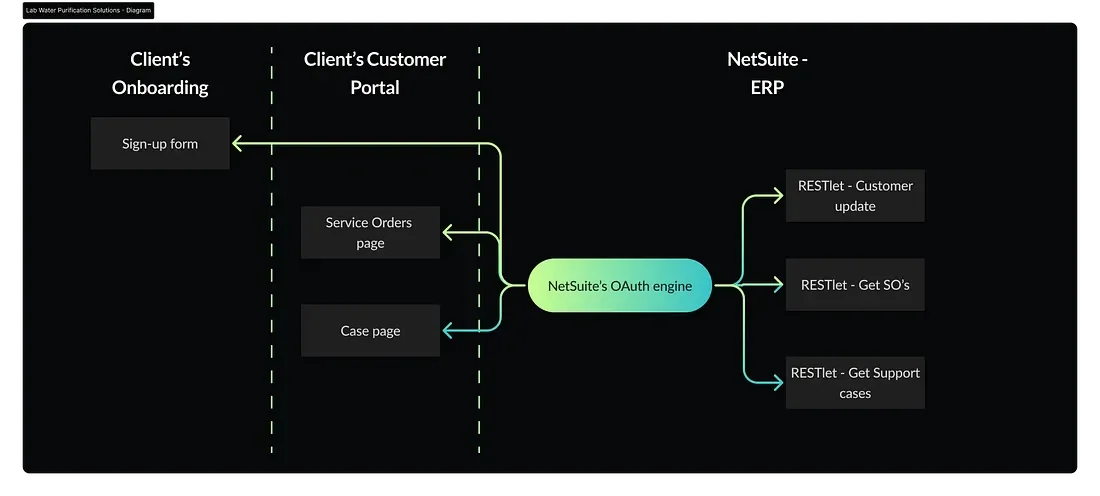 We implemented a secure NetSuite API using OAuth 2.0 and RESTlets, enabling seamless integration between their ERP and customer portal. This allowed Med Water to: