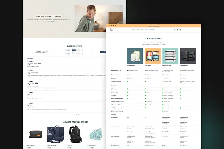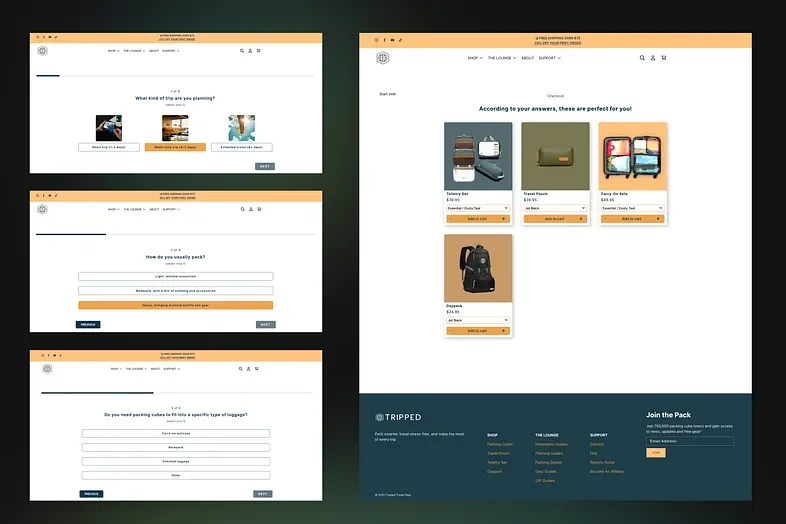 • Product Quiz — A friendly, guided experience to help customers find the perfect gear based on their travel plans.